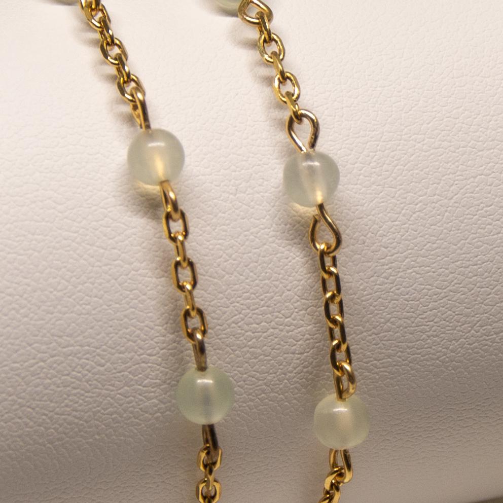 Le bracelet est composé de perles en jade de Chine de la plus haute qualité, réputées pour leur couleur vert clair translucide et leur texture lisse et soyeuse. Chaque perle est minutieusement sélectionnée pour sa pureté et sa beauté naturelle, créant ainsi un bijou d'une élégance incomparable.