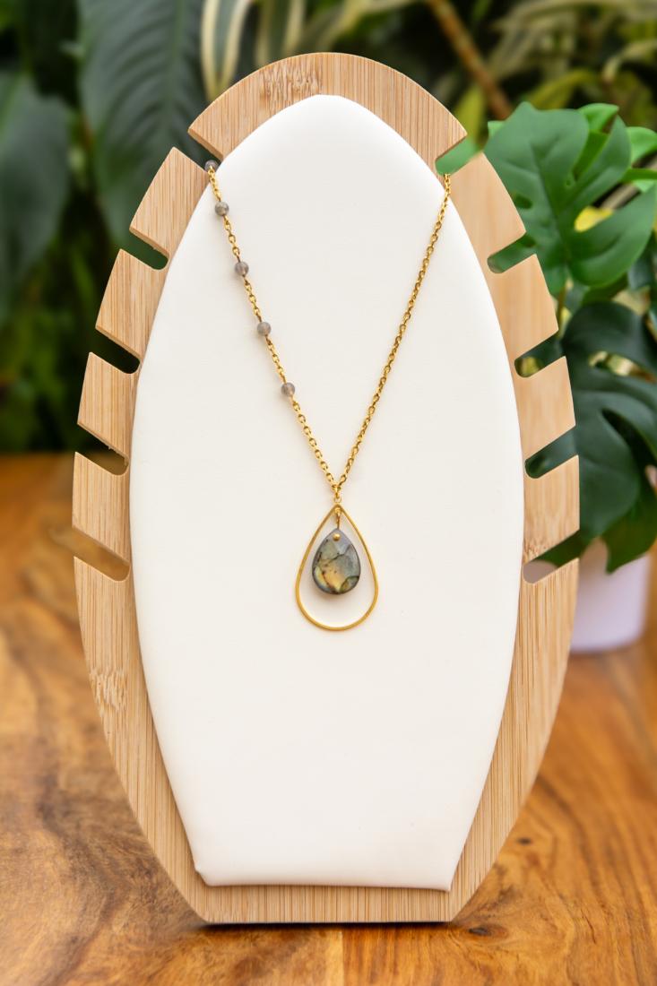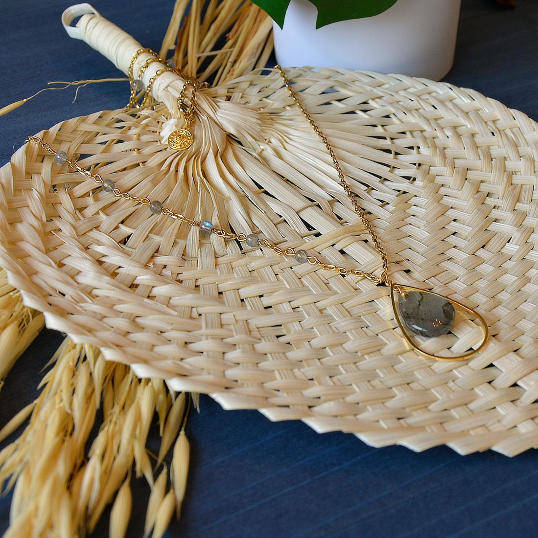 Plongez dans le mystère envoûtant de la labradorite avec notre superbe collier artisanal. Chaque pierre de labradorite, avec ses reflets chatoyants et ses nuances de bleu, vert et gris, est une œuvre d’art naturelle. Ce collier exquis capture la magie de la labradorite, ajoutant une touche de fascination à votre allure. Que ce soit pour une soirée spéciale ou une journée décontractée, ce collier est un véritable bijou qui fera briller votre style avec éclat.